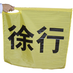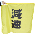 • 赤地に「止まってください」と書かれた棒付旗