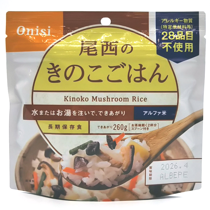 アルファ米 尾西のきのこごはん 100g(1食分) 【製造から5年保存】