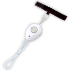 • 手の届くところに取り付けられるベルトつき防犯ブザー。光触媒の効果も。