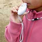 • ホイッスルとLEDライトがついたキーホルダー。