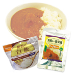 • 甘口カレーとアルファ米のセットです。お子様にもどうぞ!