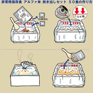 • 50食分のご飯も15分でできあがる、備蓄用に適したアルファ米の炊き出しセットです。