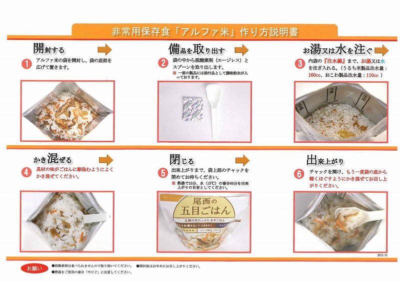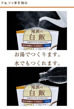 お湯か水を注いで、できあがり。非常食の定番ならアルファ米。
