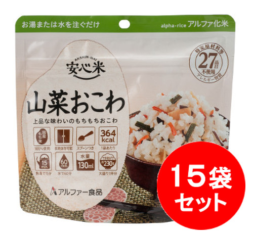 商品名 アルファー食品 安心米 山菜おこわ 15袋セット 【製造から5年保存】