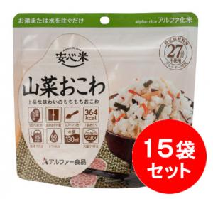 防災グッズアルファー食品 安心米 山菜おこわ 15袋セット 【製造から5年保存】