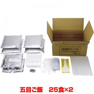 ・アルファ化米4袋 ・具材2袋 ・弁当容器50個 ・しゃもじ1本 ・輪ゴム50本 ・スプーン50本 ・衛生手袋2組 ・炊飯用内袋2枚 ・針金入りビニール紐(4本セットが1組) ・取扱説明書1枚 |