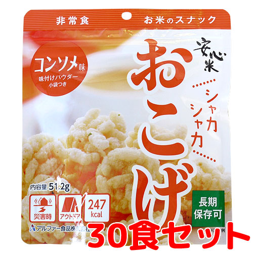 商品名 安心米おこげ コンソメ味 30食セット(1ケース) 【製造から7年保存】