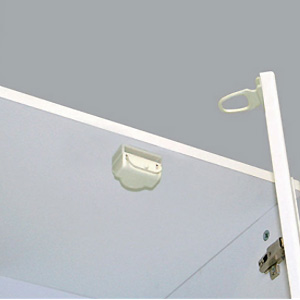 • 地震の揺れを感知して扉をロックする、扉ひらき防止ストッパーです。揺れによって食器などの収納物が飛び出すのを防ぎます。