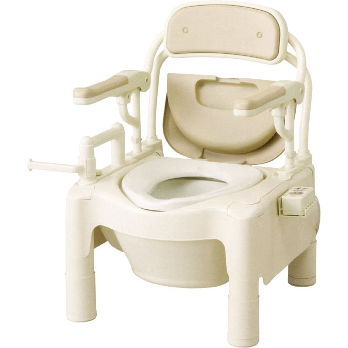 | 材質 | 本体・上蓋・便座・バケツ・アシストグリップ:ポリプロピレン ひじ掛けパイプ・背もたれパイプ:スチール(カチオン電着+塗装) ひじ掛けクッション・背もたれクッション:エチレン酢酸ビニル共重合樹脂 背もたれ本体・キャスター:ポリエチレン |