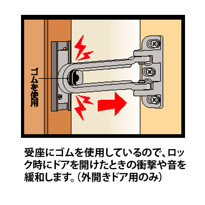 • 施錠時に地震などで玄関ドアが変形した場合でも従来の固定式よりも開錠しやすくなっています。