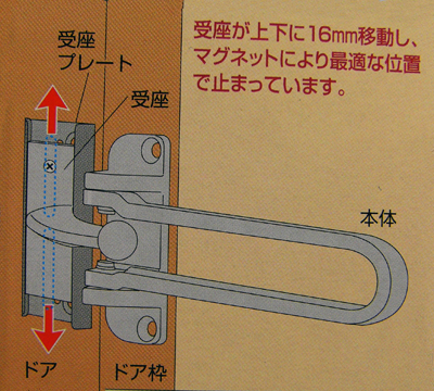 自動調整受座付き、内開きドア用取替えドアガード!