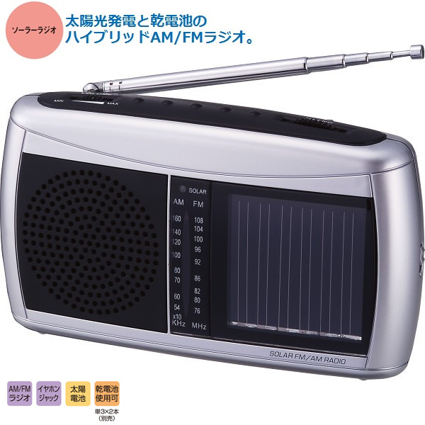 - ソーラー充電と単3電池2本で使用できるハイブリッドラジオ!
