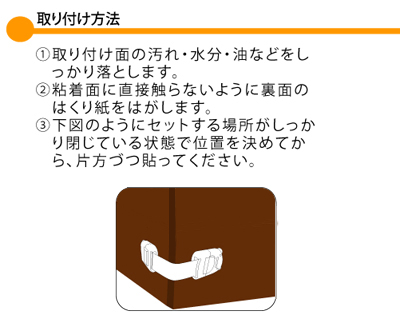引き出し・収納ケース・救急箱などをロックしてお子様のいたずらや思いがけないケガ・事故の防止に役立ちます。
