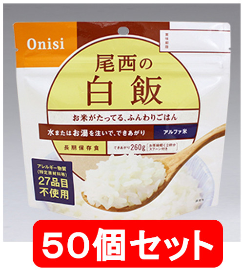 防災グッズアルファ米 尾西の白飯(白米) 1ケース(50個入り) 【製造から5年保存】
