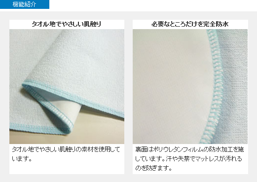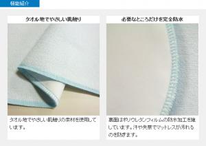 モレない、ズレない、ムレない。タオル地でやさしい肌触りの横型防水シーツ。