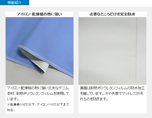 モレない、ズレない、ムレない。アイロン・乾燥機の熱に強い丈夫な横型防水シーツ。