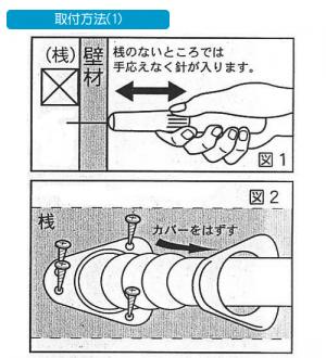 ※安全のため、必ず木ネジのきく場所を選んで取り付けてください。 (下地の桟をさがしてネジ止めしてください)