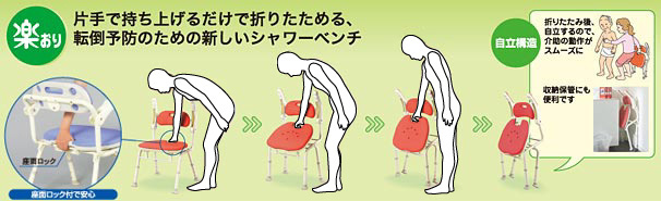 • 手すりなどを持って身体を支えながら折りたたみ動作ができるので転倒リスクを軽減!