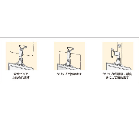 ここは空白です クリップが回転するので、横向きにして挟めます。