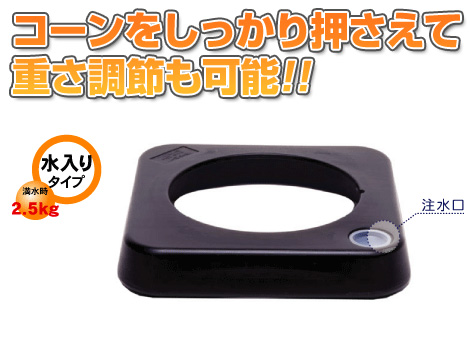 ここは空白です 水入れタイプのコーン用重石。水の量で重さを調節できます。