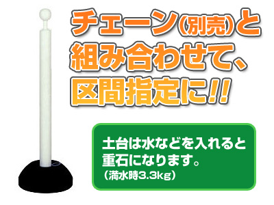 ここは空白です 注水式の土台で重しいらず。すっきり使いやすいチェーンのためのスタンドです