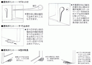 軽いドアならはなして、1コでご使用下さい。