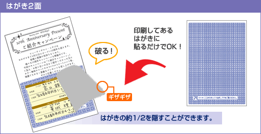 - ラベルを貼り付けて、郵送中など情報・内容を保護し、ビリビリとラベルを破ってめくると、下に隠された情報・内容を確認できます。