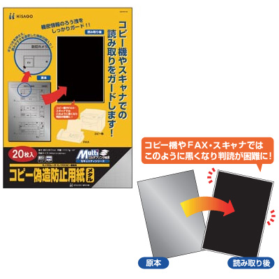 - 印刷面(表面)が、メタリックシルバー(地紋入り)に加工されたコピー防止用紙。
