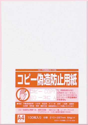 情報保護用紙 コピー偽造防止用紙(A4判)100枚 1047 (5セット)