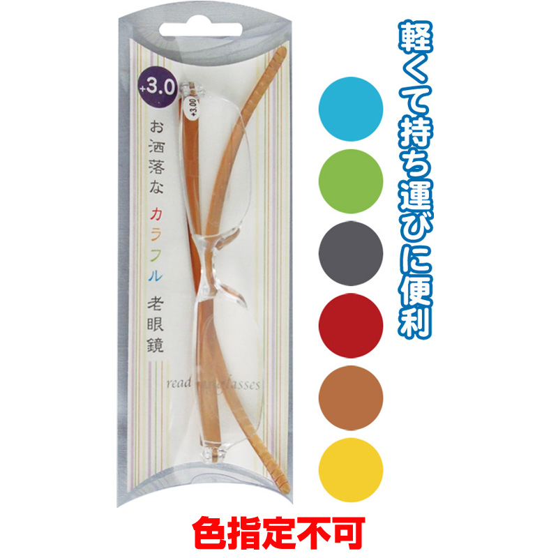 【在庫限り】 お洒落なカラフル老眼鏡(プラス3.0)色指定不可