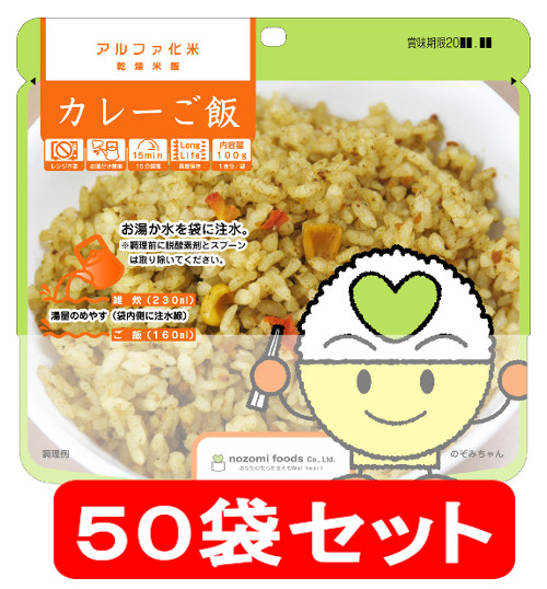防災グッズ希望食品 アルファ化米 カレーご飯 50袋セット(1ケース) 【製造から5年保存】