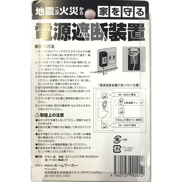 商品名 【在庫限り】 電源遮断装置 地震時のブレーカー遮断装置