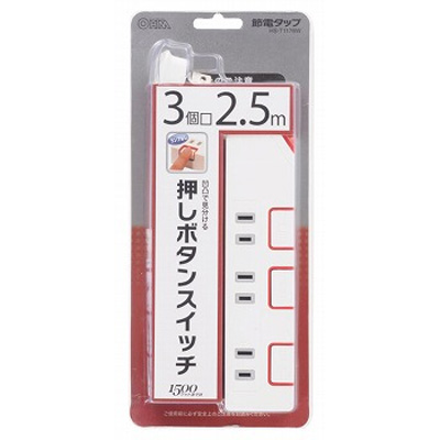 商品名 オーム電機 押しボタンスイッチ付き 節電タップ 3個口 2.5m