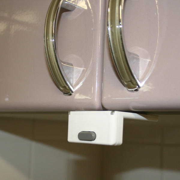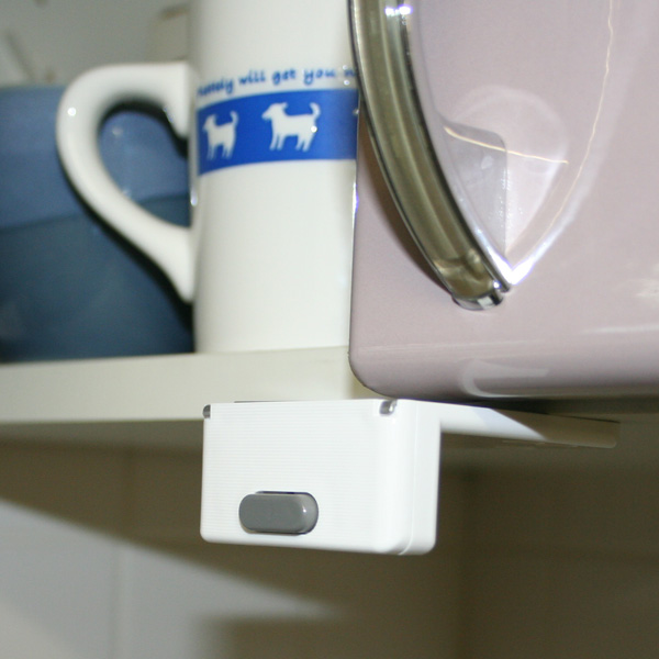- 地震の際、キッチンキャビネット等の吊り戸棚からの調理道具、食器類の飛び出し防止に役立つ商品です。