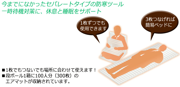段ボール1箱に100人分(300枚)のエアマットが収納されています。