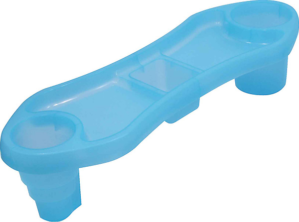 膝にしっかり固定できるドリンクポケット付きトレーです。