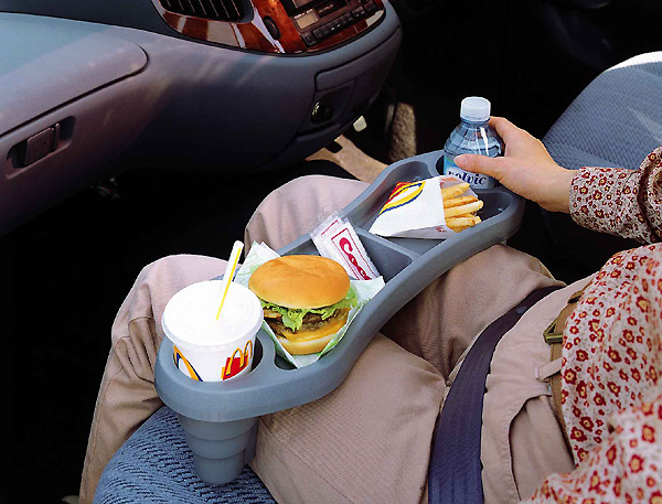 ひざをはさんでしっかり安定!ドライブ中の食事も安定。