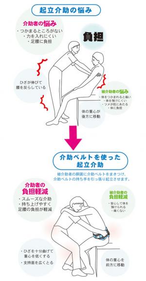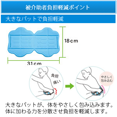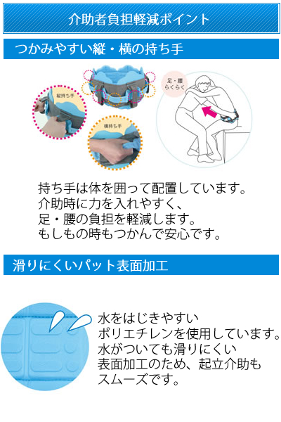 介助時に力を入れやすく、足・腰の負担を軽減します。もしもの時もつかんで安心です。 |