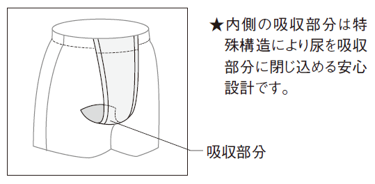 • 内側の吸収部分は特殊構造により尿を吸収部分に閉じ込める安心設計です。