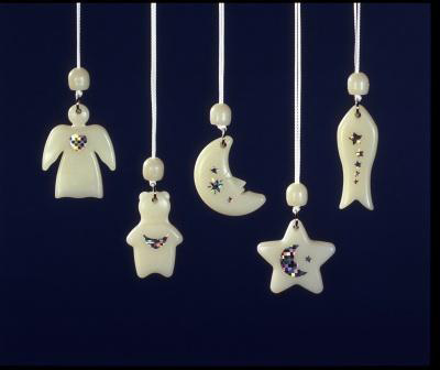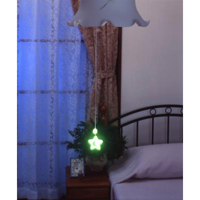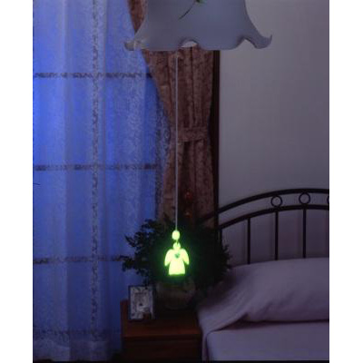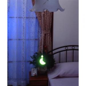 • 太陽や照明の光を吸収して、暗くなると、可愛いキャラクターや月、星が柔らかく光り出します。