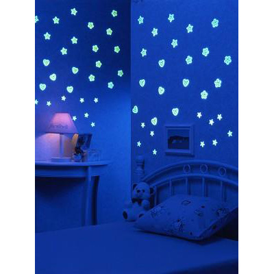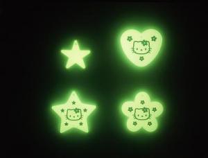 - 太陽や照明の光を吸収して、暗くなると、可愛いキャラクターや月、星が柔らかく光り出します。