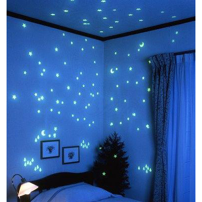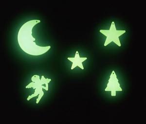 - 太陽や照明の光を吸収して、暗くなると、可愛いキャラクターや月、星が柔らかく光り出します。