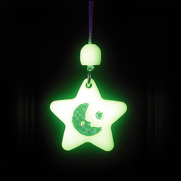 - 太陽光やライトの光を吸収し暗くなると緑色に発光します。
