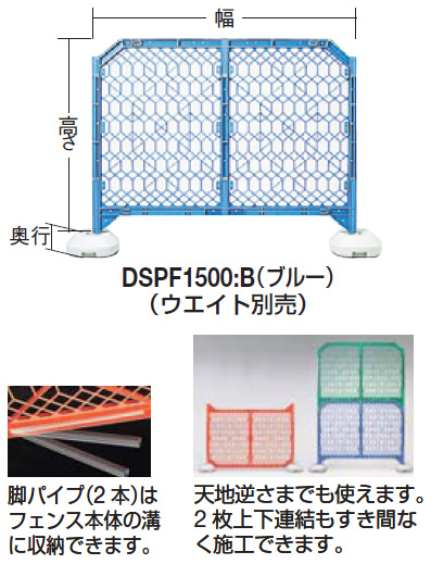 - 脚パイプ(2 本)はフェンス本体の溝に収納できます。