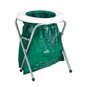 座面のリングを使って、トイレ用袋をセットすることができるトイレ用折りたたみイスです。