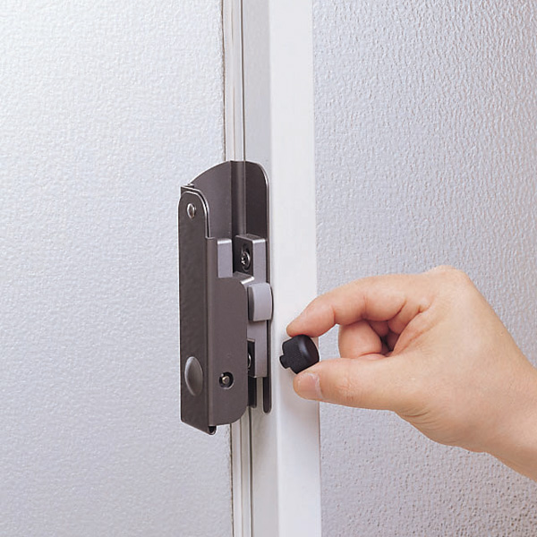 • 本体にはツマミタイプの脱着可能な鍵がございますので、それで防具本体を解除しない限りサッシは開けれませんので大変防犯性に優れた商品であります。
