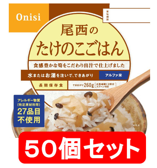 防災グッズアルファ米 尾西のたけのこごはん 1ケース(50個入り) 【製造から5年保存】