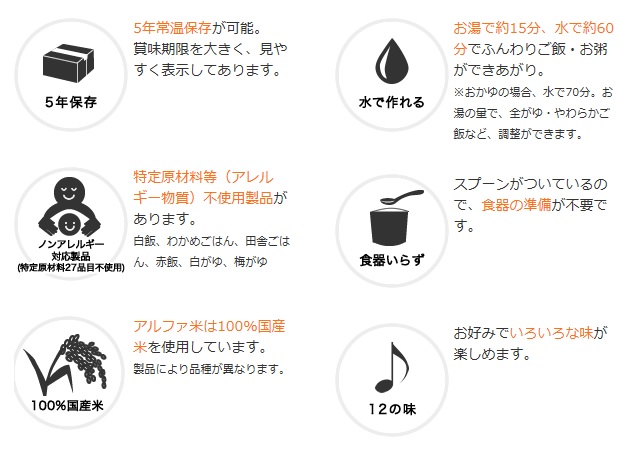 ここは空白です お湯か水を注いで、美味しいご飯に。賞味期限5年の保存食。