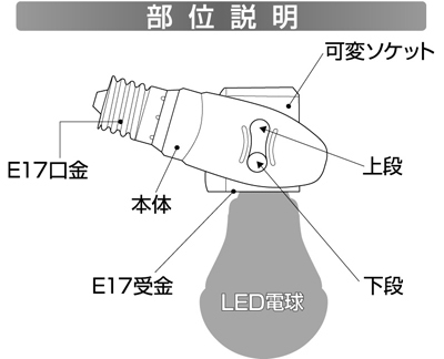 防犯グッズライテックス E17 LED電球専用 可変式ソケット DS17-10