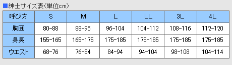 胸囲(cm) S:80-88 M:88-96 L:96-104 LL:104-112